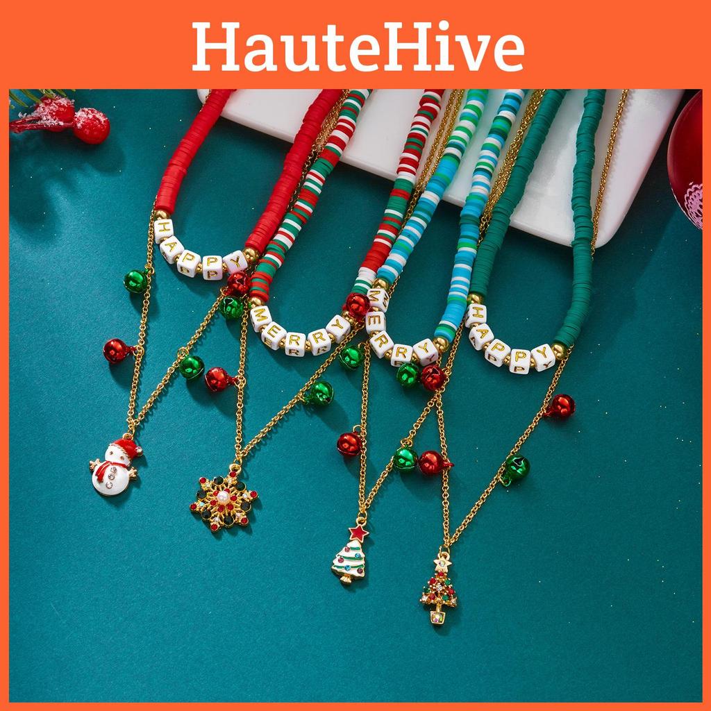 праздничное рождественское ожерелье, кулон в виде Санта-Клауса, праздничные украшения, ожерелье с оленями и снежинками, унисекс рождественский аксессуар, украшения на зимнюю тематику, сезонное ожерелье с кулоном, праздничные украшения для вечеринки