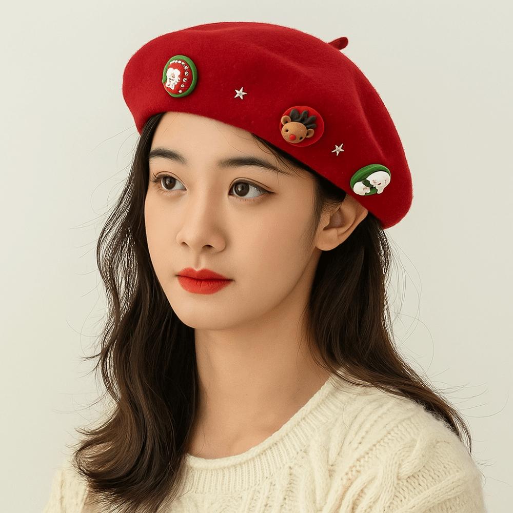 Звездный Рождественский Берет Однотонная Восьмиугольная Шляпа Кепка Газетчика Шерстяной Берет Уличная Одежда