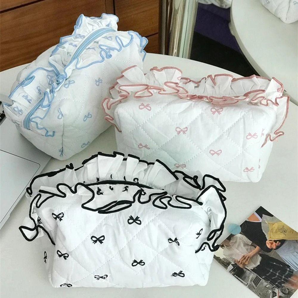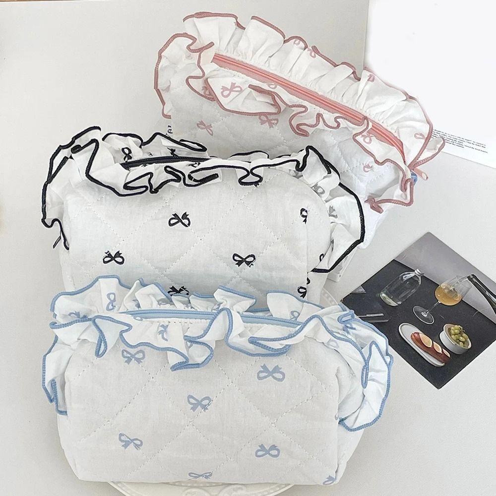 Bow Print Large Capacity Pen Case Flounce Makeup Lipstick Bag Portable Stationery Storage Bag Kids