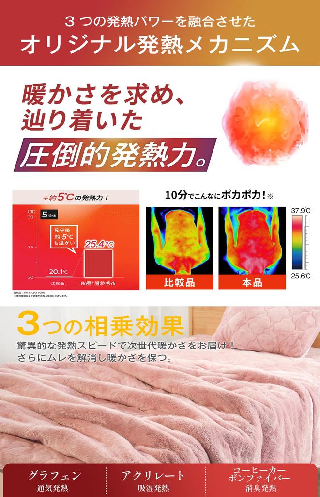 This high-performance blanket combines six technologies for a thin, lightweight yet warm look. This winter blanket combines aerogel, the insulating material used in space suits, with Nobel Prize-winning graphene for a golden blend that locks in heat while instantly blocking out the cold. It also emits far-infrared rays for rapid heat generation, gently warming you to your core. The instant warmth reaches your skin, instantly relieving your cold anxieties. It also incorporates top-class moisture-wicking and heat-generating material, acrylate, which has 2.5 times the heat-generating power of wool, instantly converting moisture from your body into heat, keeping you warm all night long. Its exceptional moisture-wicking properties quickly wick away sweat and moisture, eliminating stuffiness inside the futon. It also features antibacterial and deodorizing CLEAN MAX filling and eco-friendly coffee carbon fiber for amazing deodorizing properties that eliminate sweat and body odors. This blanket's unique 8-layer thermos structure completely overturns the conventional wisdom that "the more volume, the warmer." It's "thin yet warm! Fast heating, heat generation, heat retention, and insulation" -- maintaining a super-warm environment inside the blanket all night long. You can enjoy a comfortable, "neither cold nor stuffy" sleep even in the middle of winter, without having to turn on the heater.