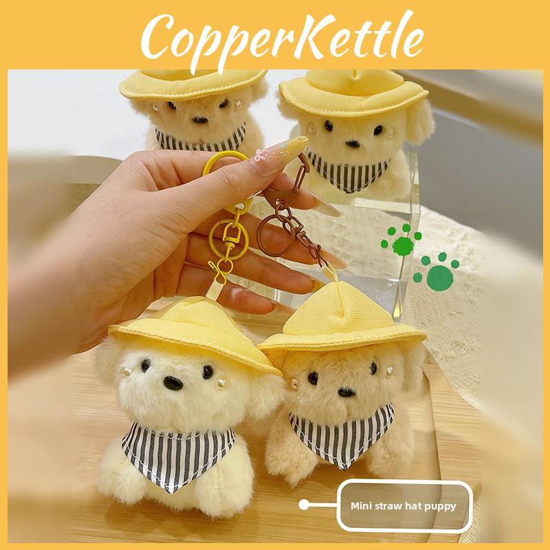Плюшевый брелок в виде собаки в соломенной шляпе с милым 3D-дизайном для украшения сумки