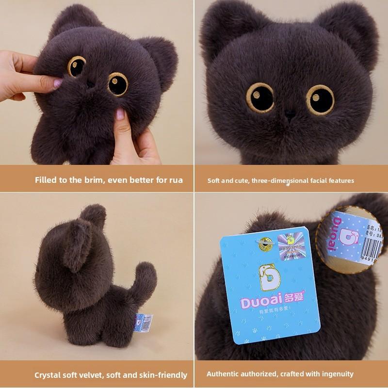 Плюшевый черный кот для детей и взрослых, супермягкий короткошерстный плюш, компаньон для сна