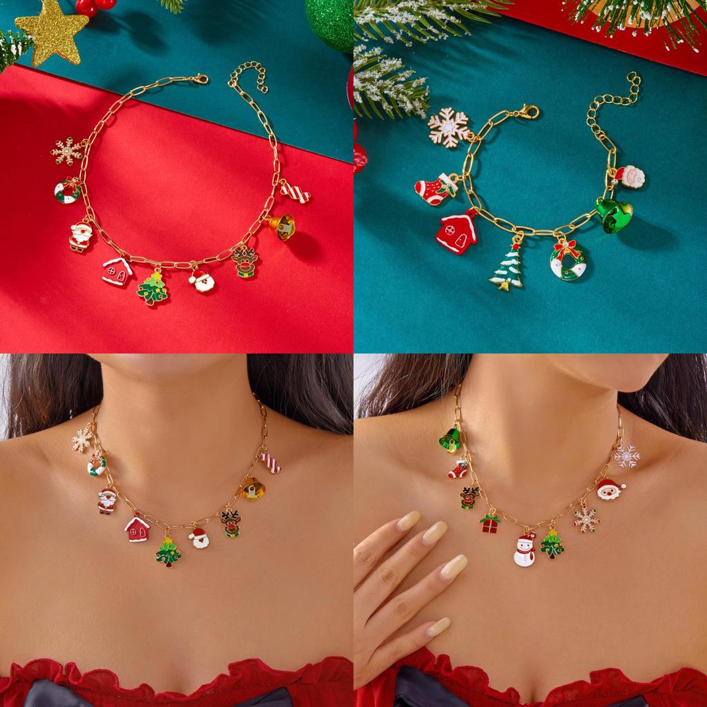 Рождественский праздничный набор украшений с геометрической подвеской из цинкового сплава и цепочками разных стилей для мужчин и женщин