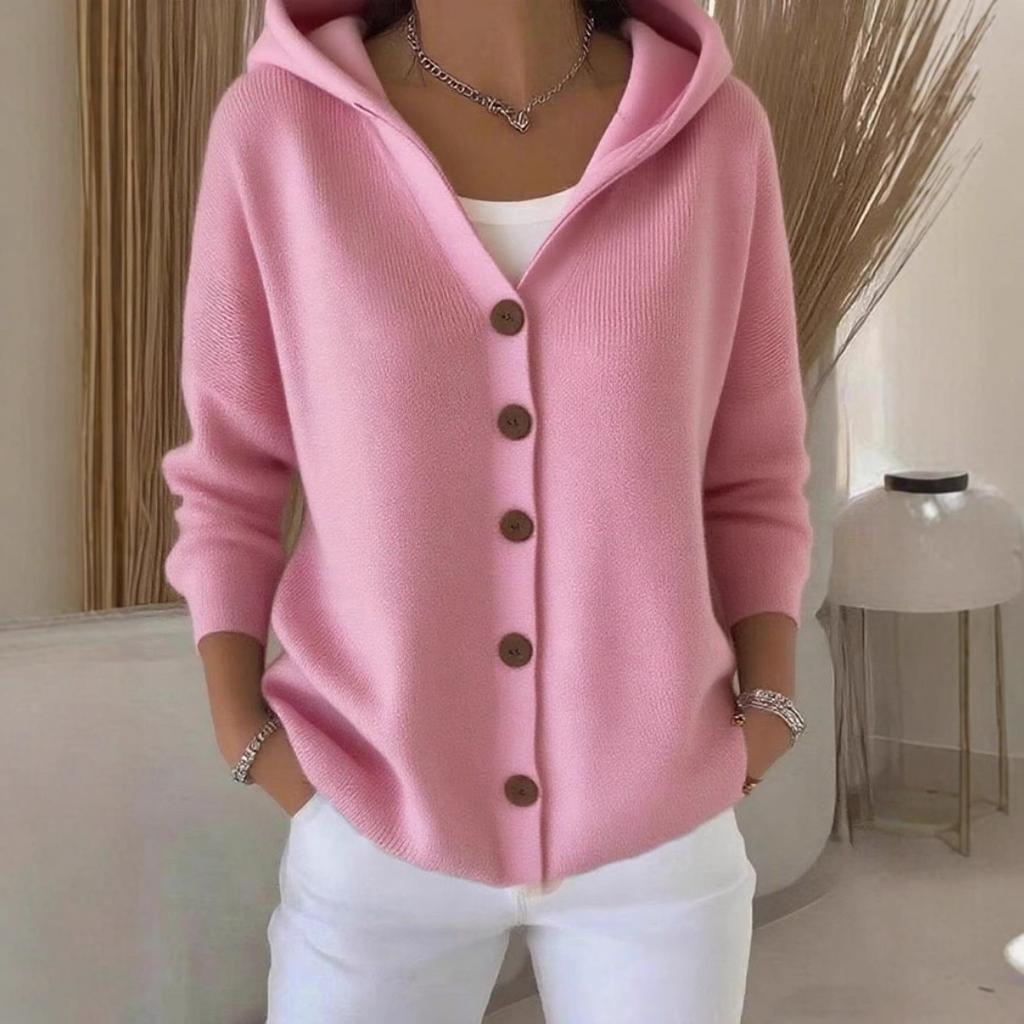 Кардиган-свитер с капюшоном на пуговицах, Новая однотонная повседневная и модная женская одежда для осени и зимы