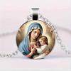 Virgin Mary Mother Of Baby Glass Pendant Jesus Christ Christian Jewelry Jesus Oil Painting Necklace Gift For Men Women