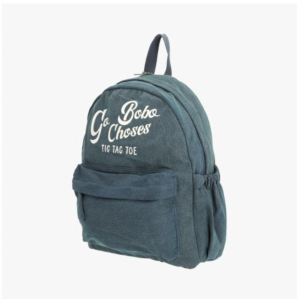The Go bobo denim backpack is designed for elementary school children. Made from blue denim material, this children's school bag features a casual and practical design. Suitable for toddlers, this backpack is perfect for elementary students and is crafted from durable organic cotton for safety and environmental friendliness.