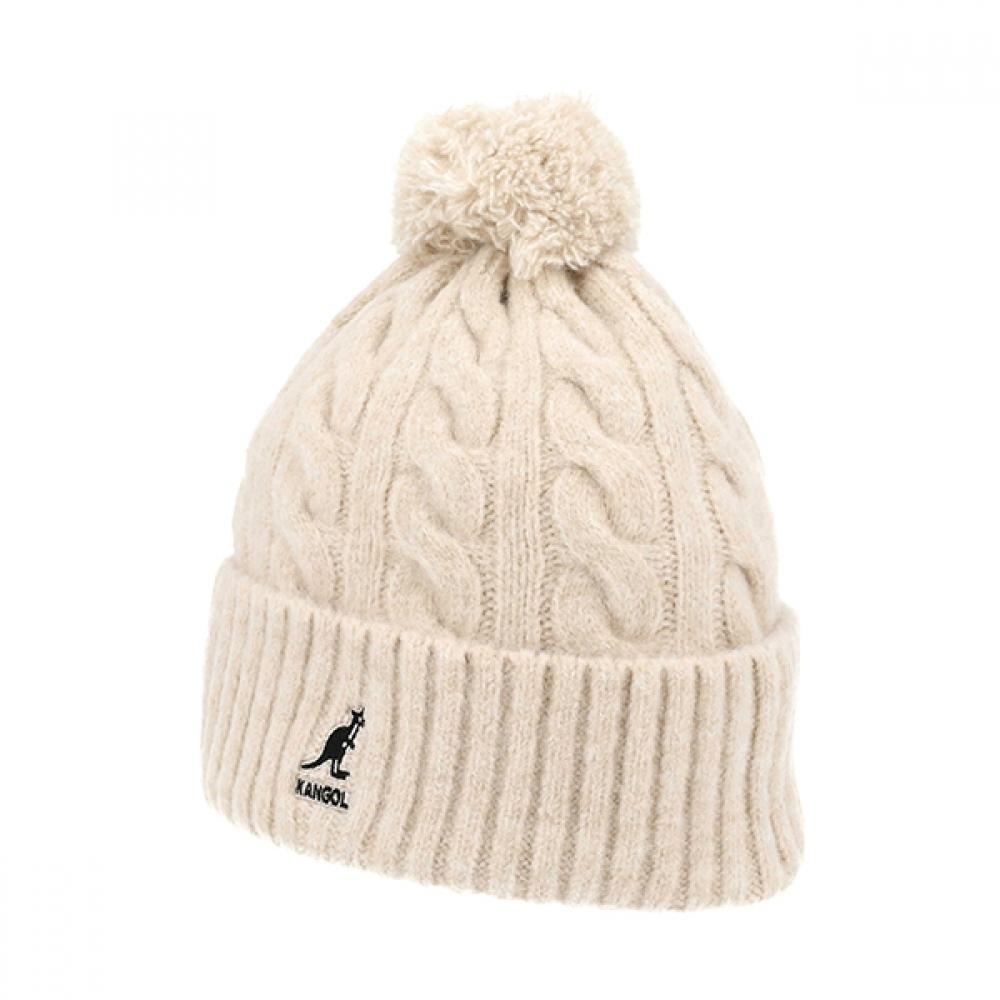 KANGOL Шапка бини с помпоном, вязаная косами K4460SM БЕЖЕВЫЙ