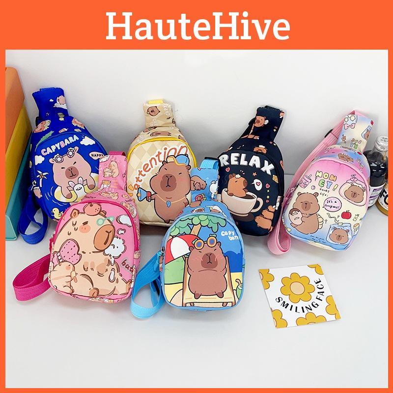 Stylish Children's Cartoon Pattern Crossbody Bag In Black Pink And Blue Colors