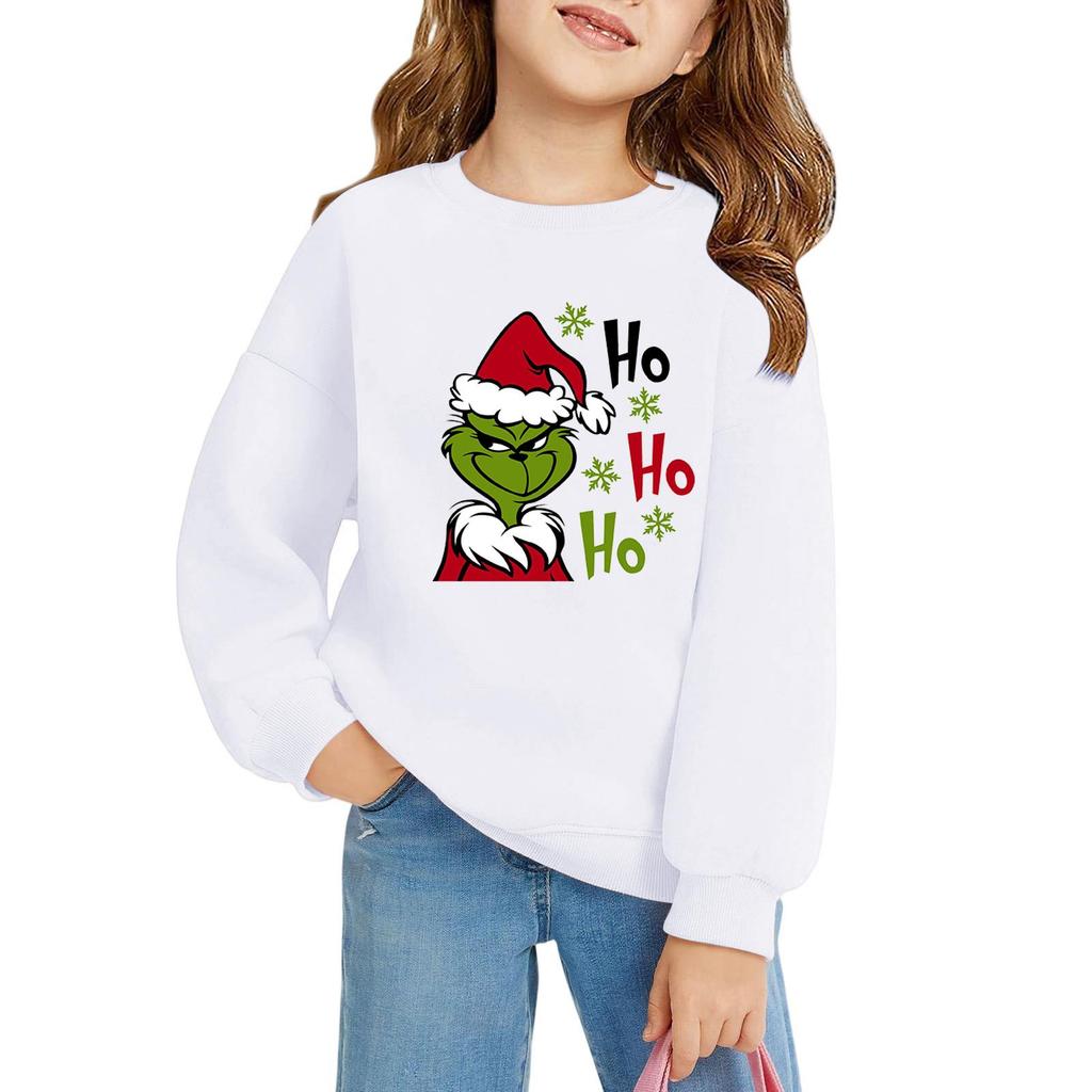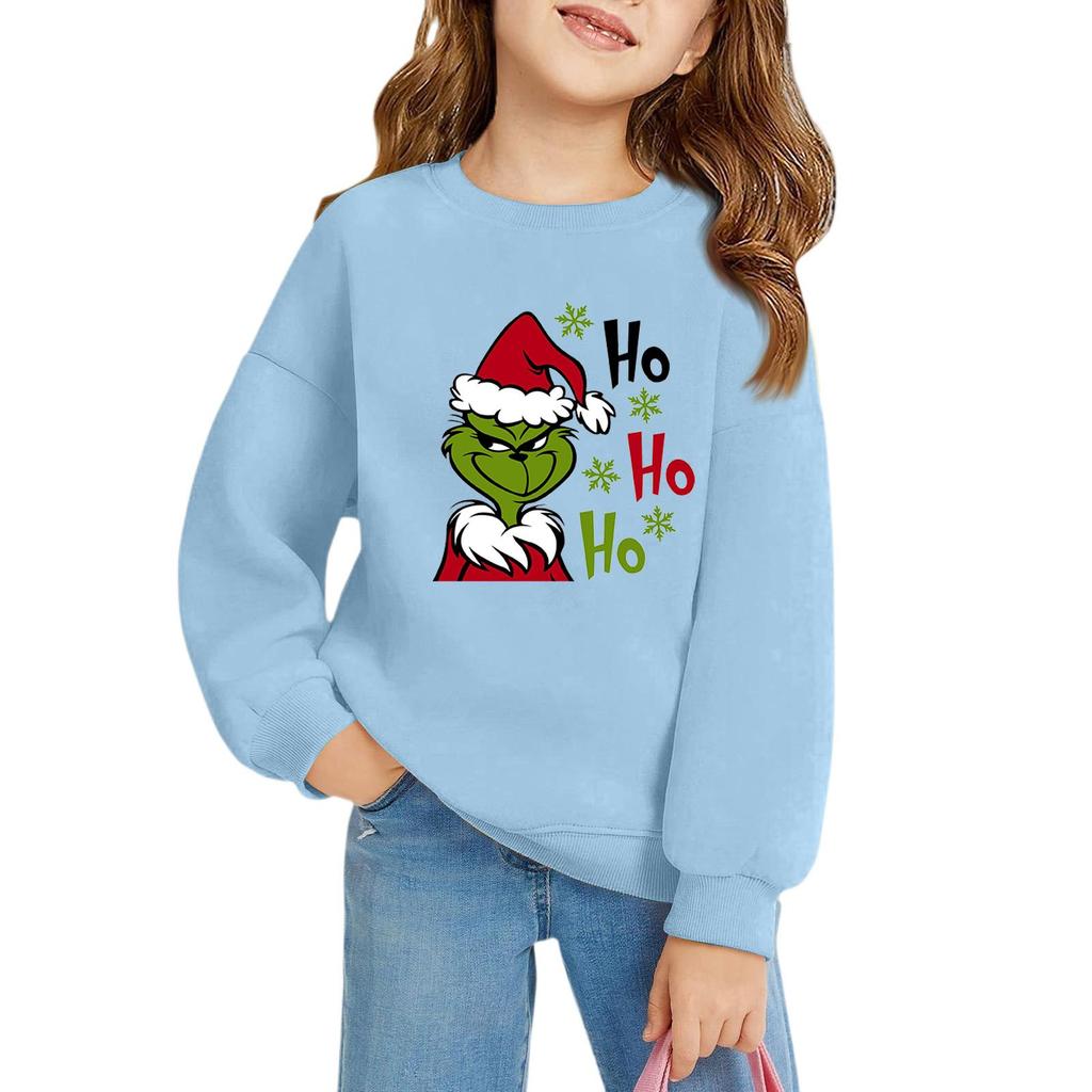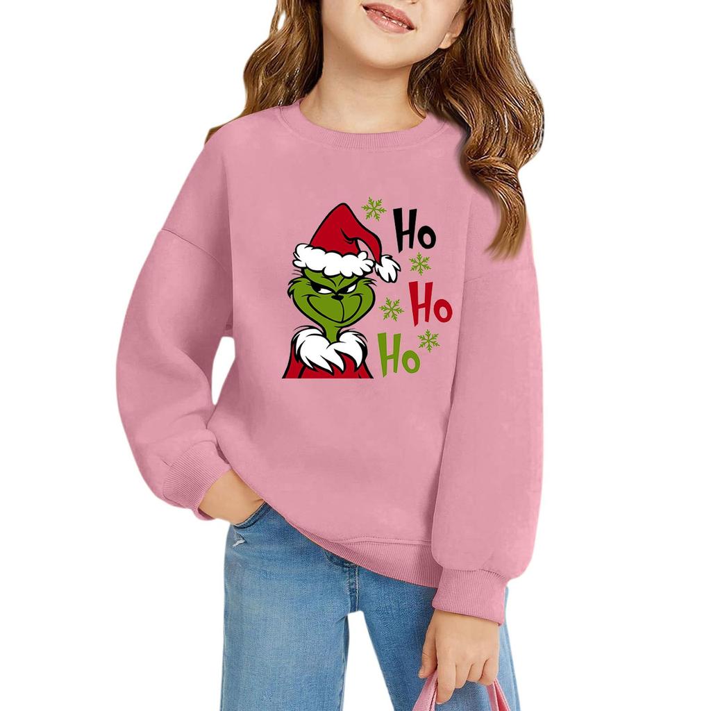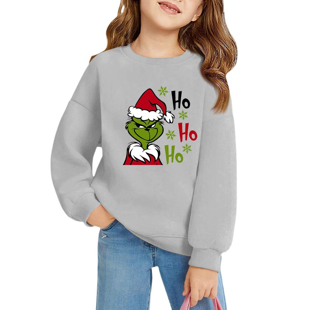 Рождественские пуловеры с круглым вырезом для девочек, детские топы с принтом