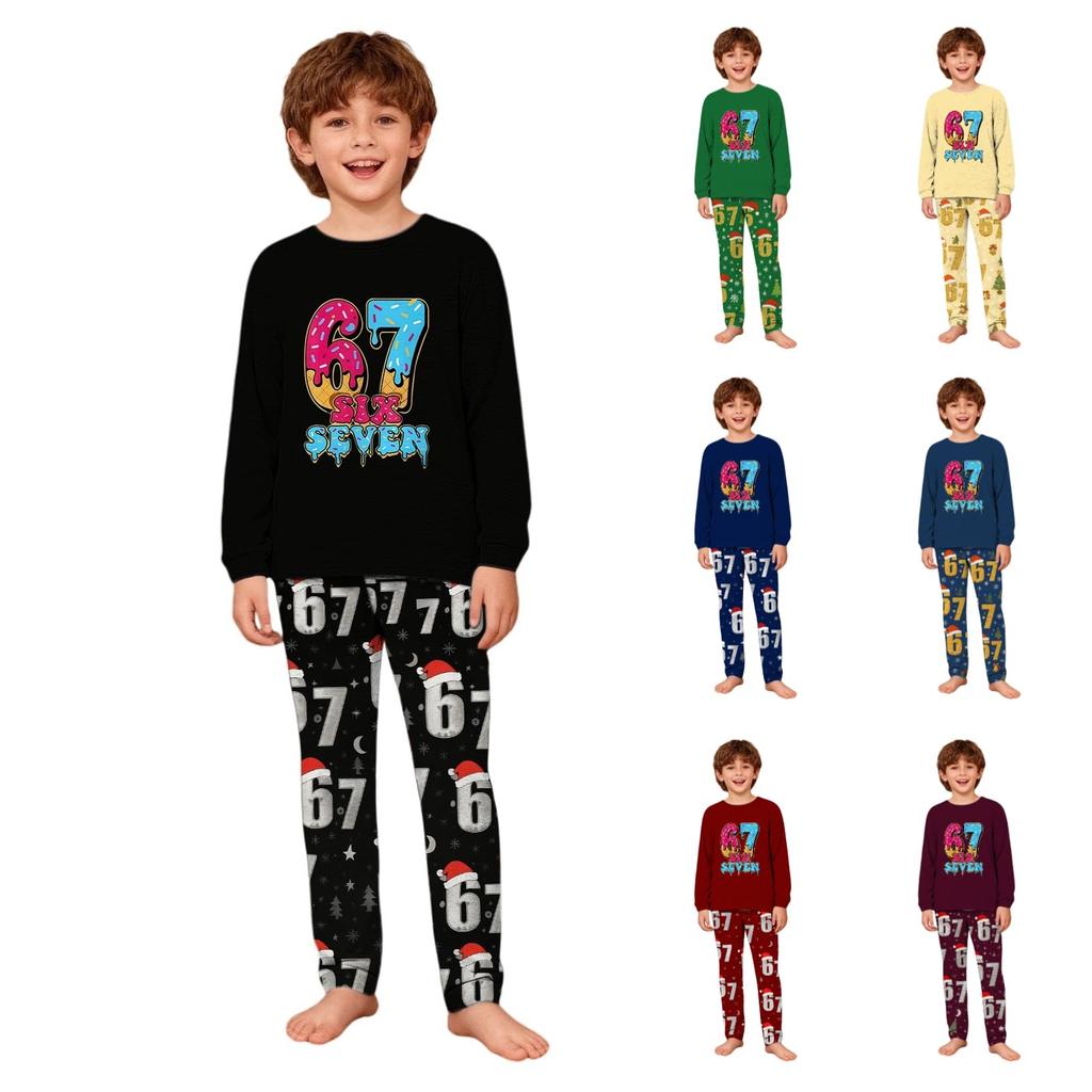 Детские комплекты с рождественским принтом Пижамы Домашняя одежда Наряды Семейный комплект: Топы с длинным рукавом + брюки