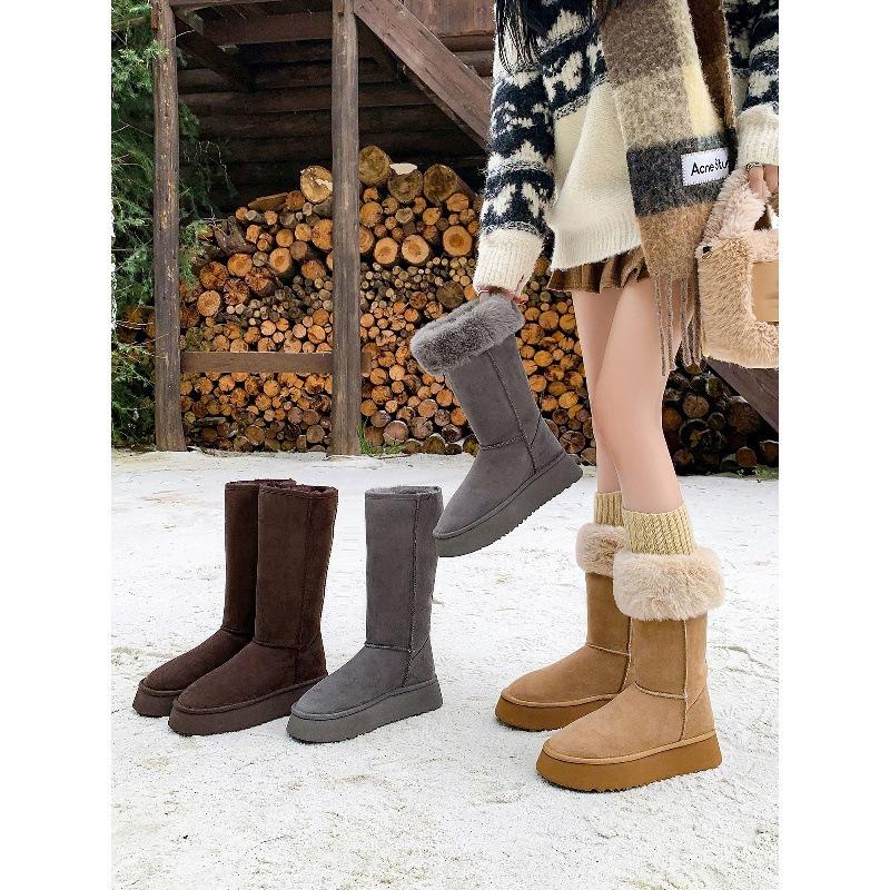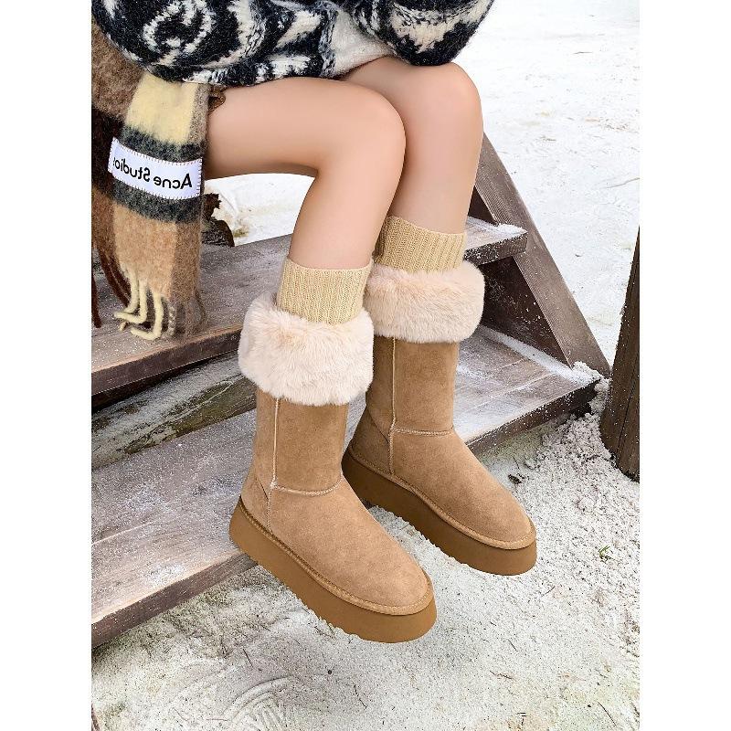 Women's soft elastic cold warm padded snow boots thick-soled height increase non-slip wear outdoor leisure sports mid-calf cotton boots