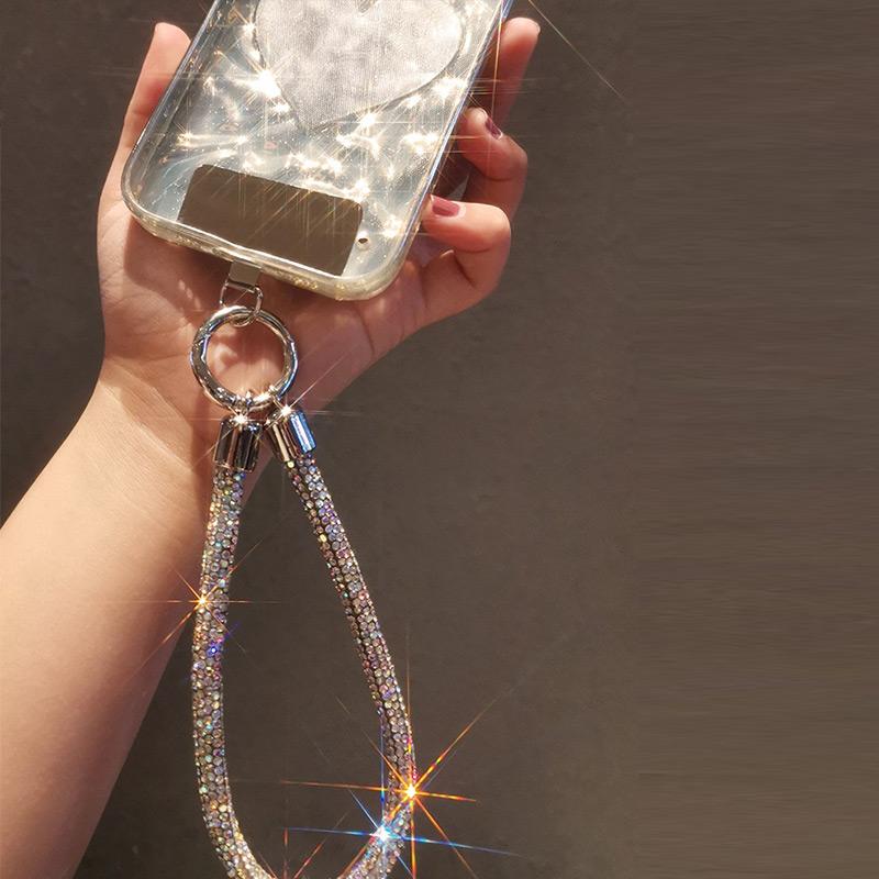 Full Crystal Diamond Phone Lanyard Light Luxury Style Short Chain Handheld Hanging Wrist Flash Diamond With Metal Clip Universal — купить товар онлайн с бесплатной доставкой по всему миру!