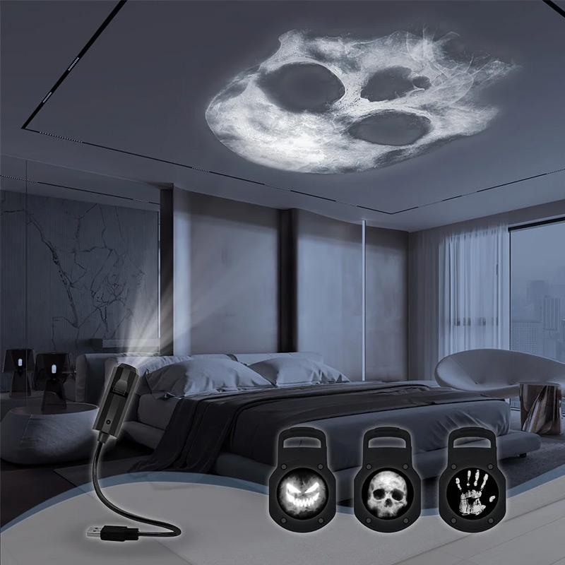 Хэллоуин USB Проектор Свет Череп Ночник Призрак Светодиодная Лампа Вращающийся на 360 градусов Переключаемый Дизайн Паттерна Темная и Ночная Атмосфера