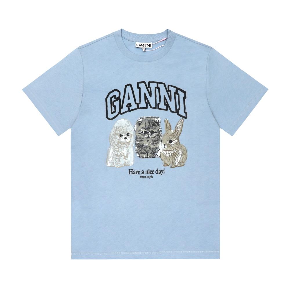 Ganni Женская футболка с коротким рукавом с принтом логотипа животного T4278 570 — купить товар онлайн с бесплатной доставкой по всему миру!