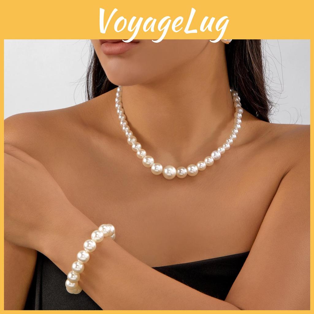 Retro Inspired Pearl Accessories Set With Handcrafted Multilayer Necklace And Ear Jewelry