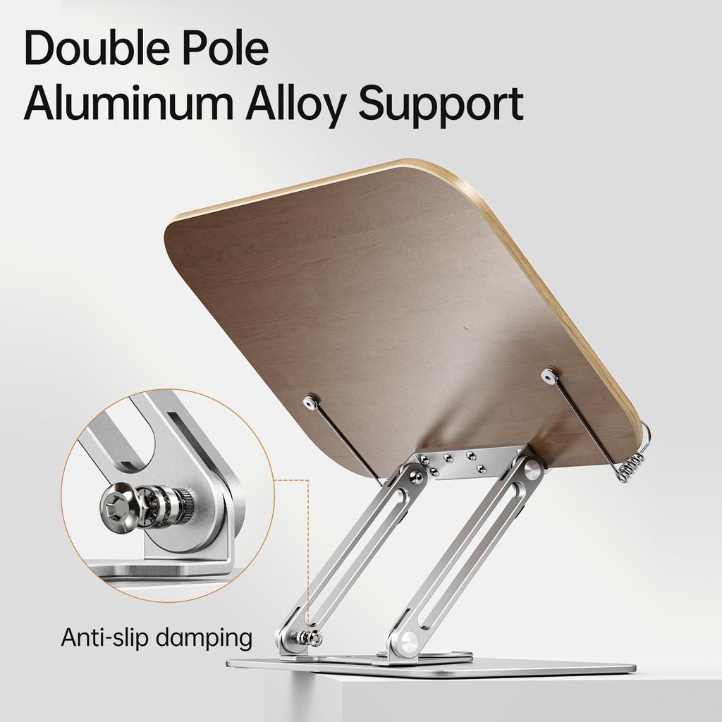[Подставка из высококачественного алюминиевого сплава] - подставка поддерживается прочной складной конструкцией из алюминиевого сплава с двумя стержнями, обеспечивающей надежную поддержку ваших книг или планшетов.