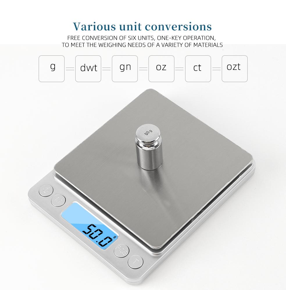 Multi-функции:Быстрое преобразование единиц измерения между g, ozt, dwt, ct, gn; Имеет четкий синий ЖК-экран с подсветкой, который можно читать при любом освещении; Поставляется с двумя пластиковыми лотками, которые удерживают свободные даже порошкообразные предметы. Идеально подходит для выпечки, приготовления пищи, контроля порций, пересылка, перезагрузки и ювелирных изделий. Этот небольшой масштаб также может быть использован в простом лабораторном эксперименте.