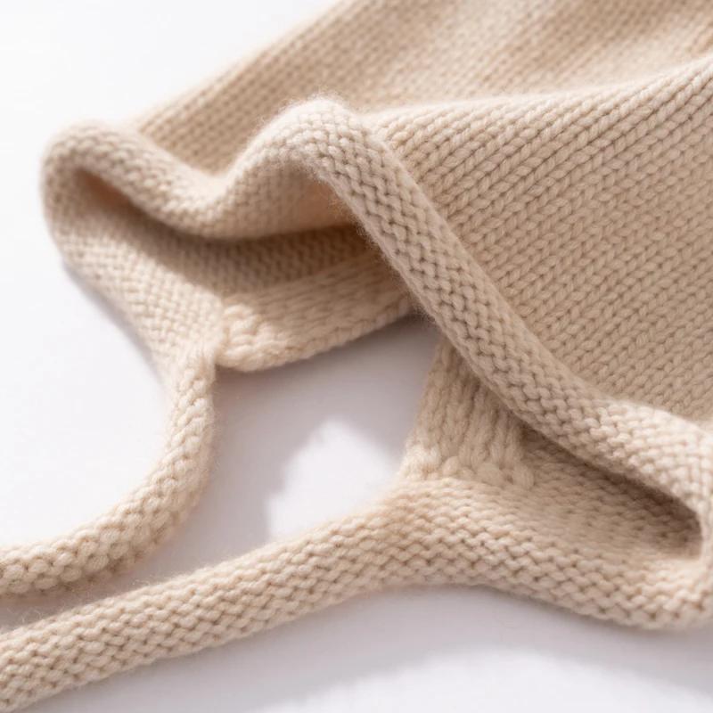 Женская шапка из 100% кашемира, толстая, с защитой ушей, однотонная, вязаная, теплая, зимняя, пуловер, шерстяная, со шнуровкой, с отворотом, шапка-слинг