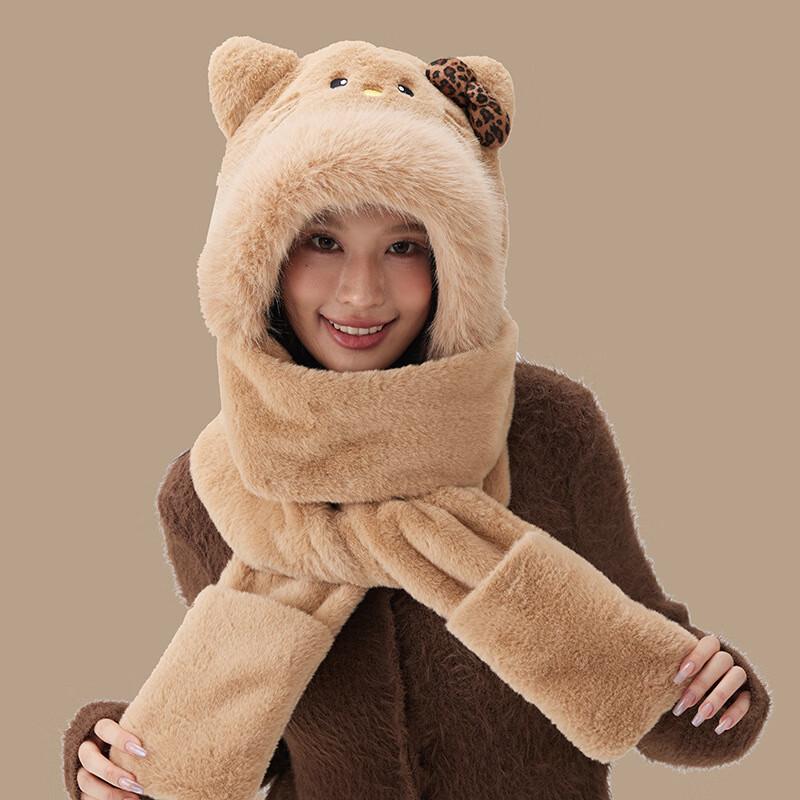 Милый зимний кошачий набор из 3 предметов: шапка, шарф и перчатки