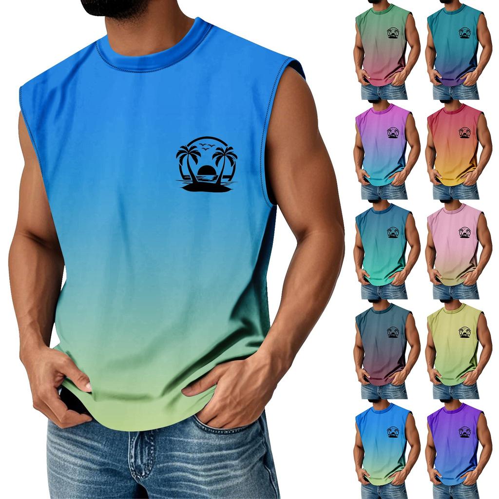 Мужская летняя майка без рукавов с принтом, круглым вырезом и градиентом, спортивная, в стиле кэжуал