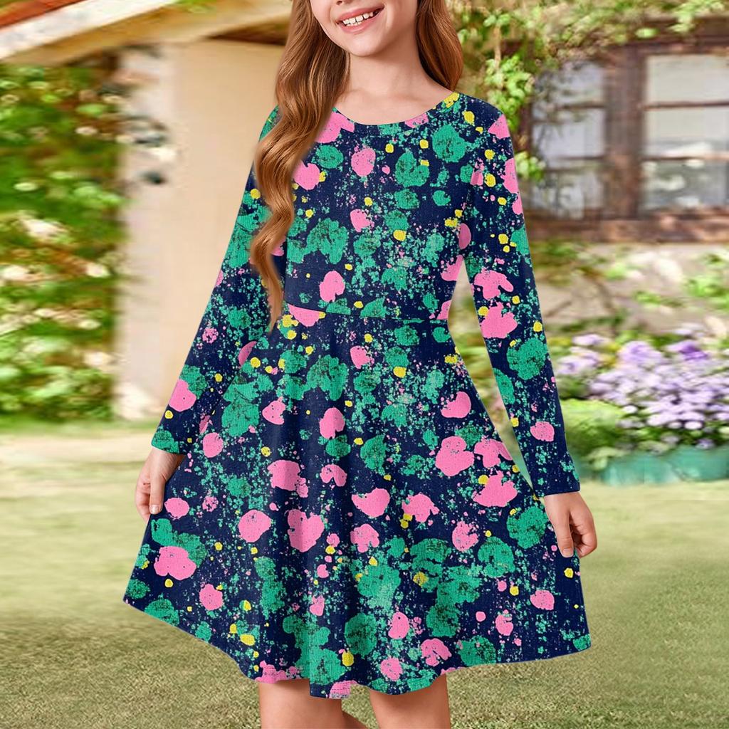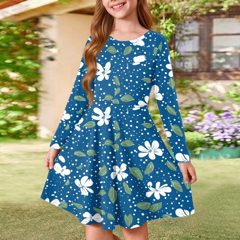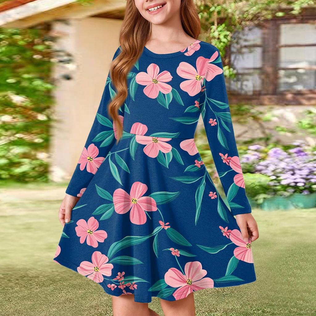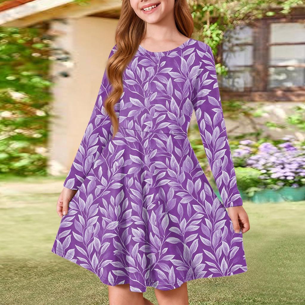 Летнее платье принцессы для девочек - платье-футболка А-силуэта с длинными рукавами