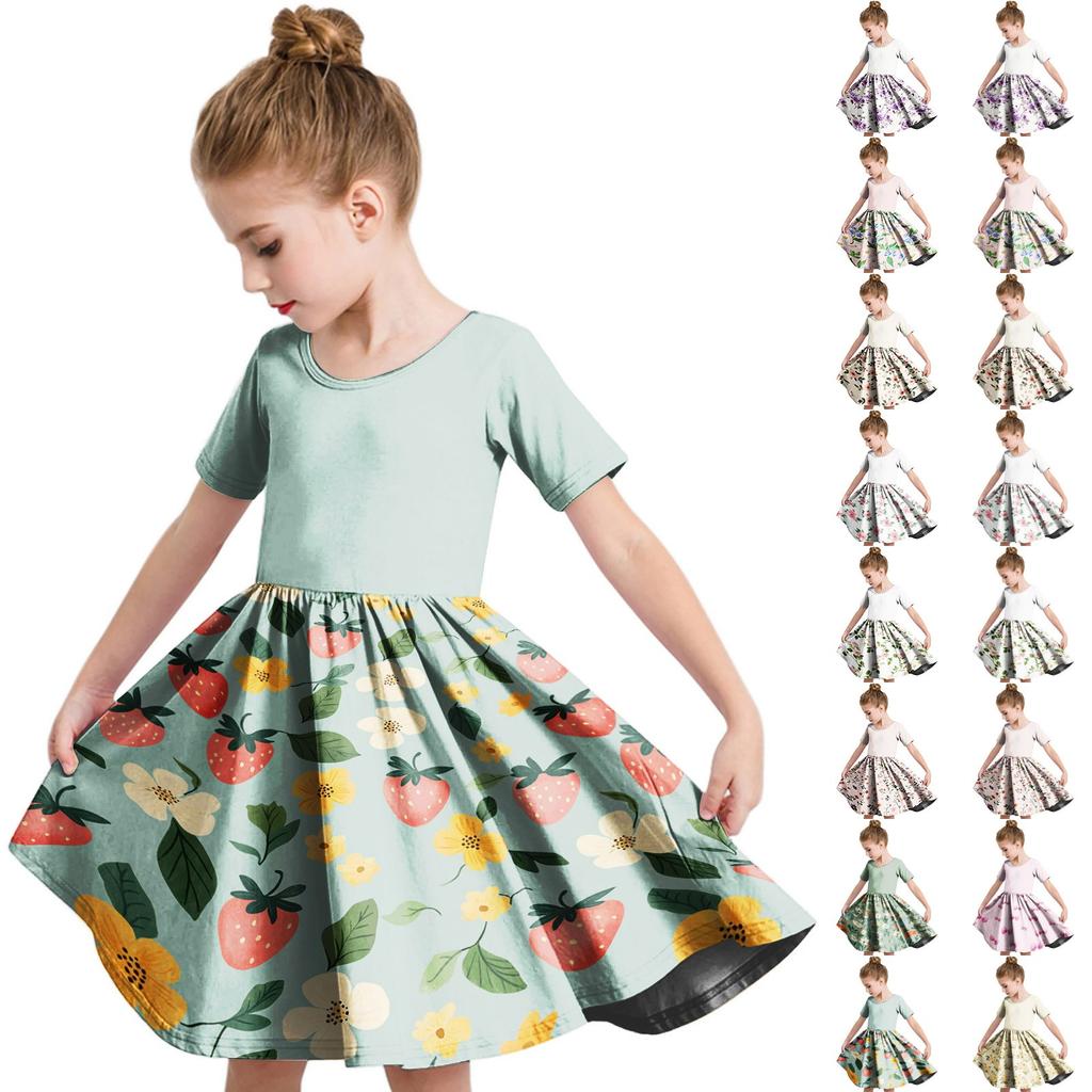Летнее платье для девочек, платье для малышей, однотонное повседневное платье-футболка с коротким рукавом А-силуэта