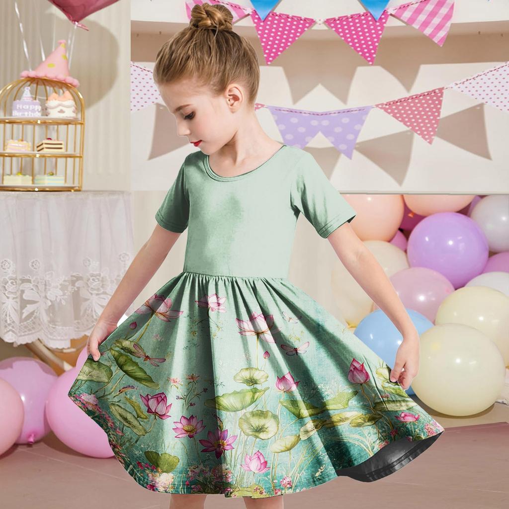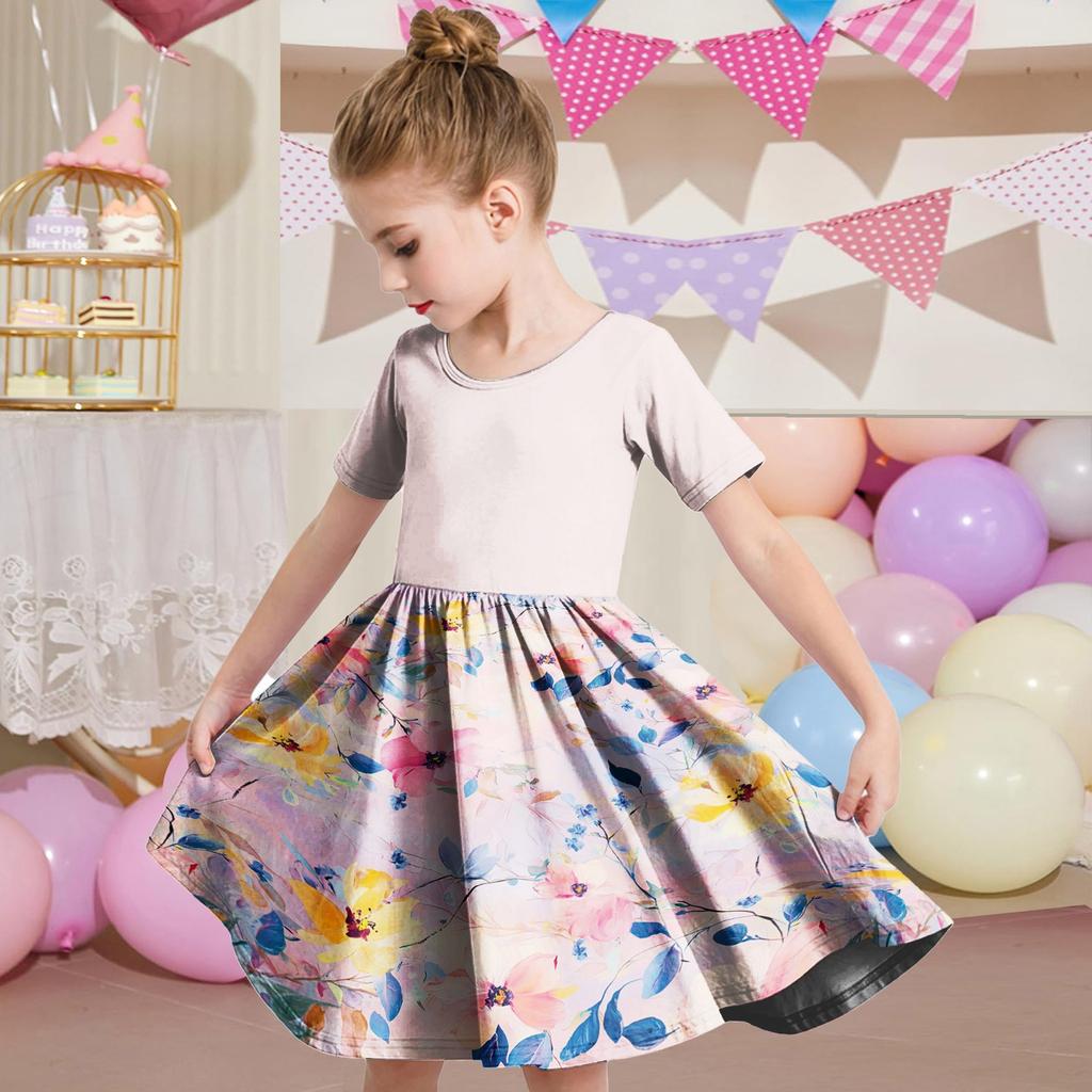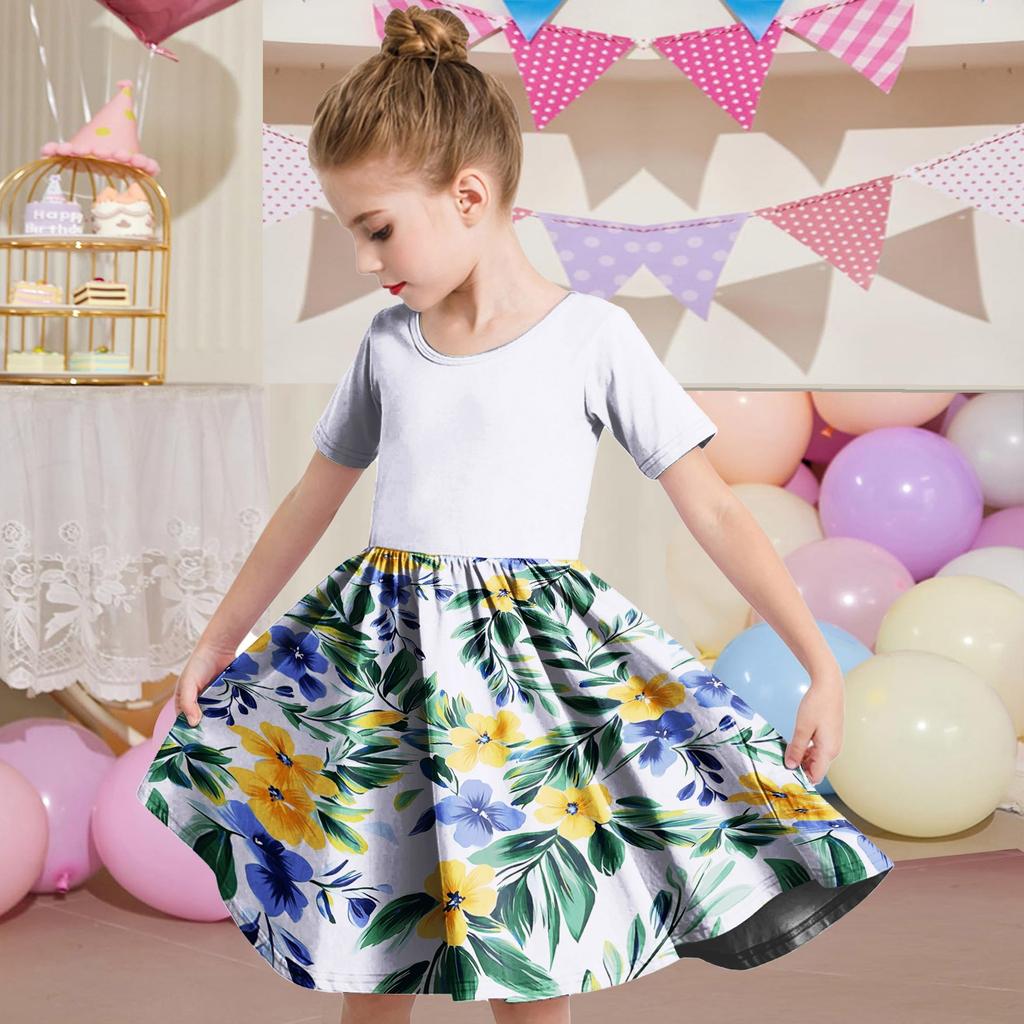 Летнее платье для девочек, платье для малышей, однотонное повседневное платье-футболка с коротким рукавом А-силуэта