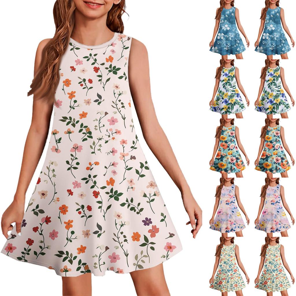 Летнее платье для девочек без рукавов с принтом в цвете, повседневное платье