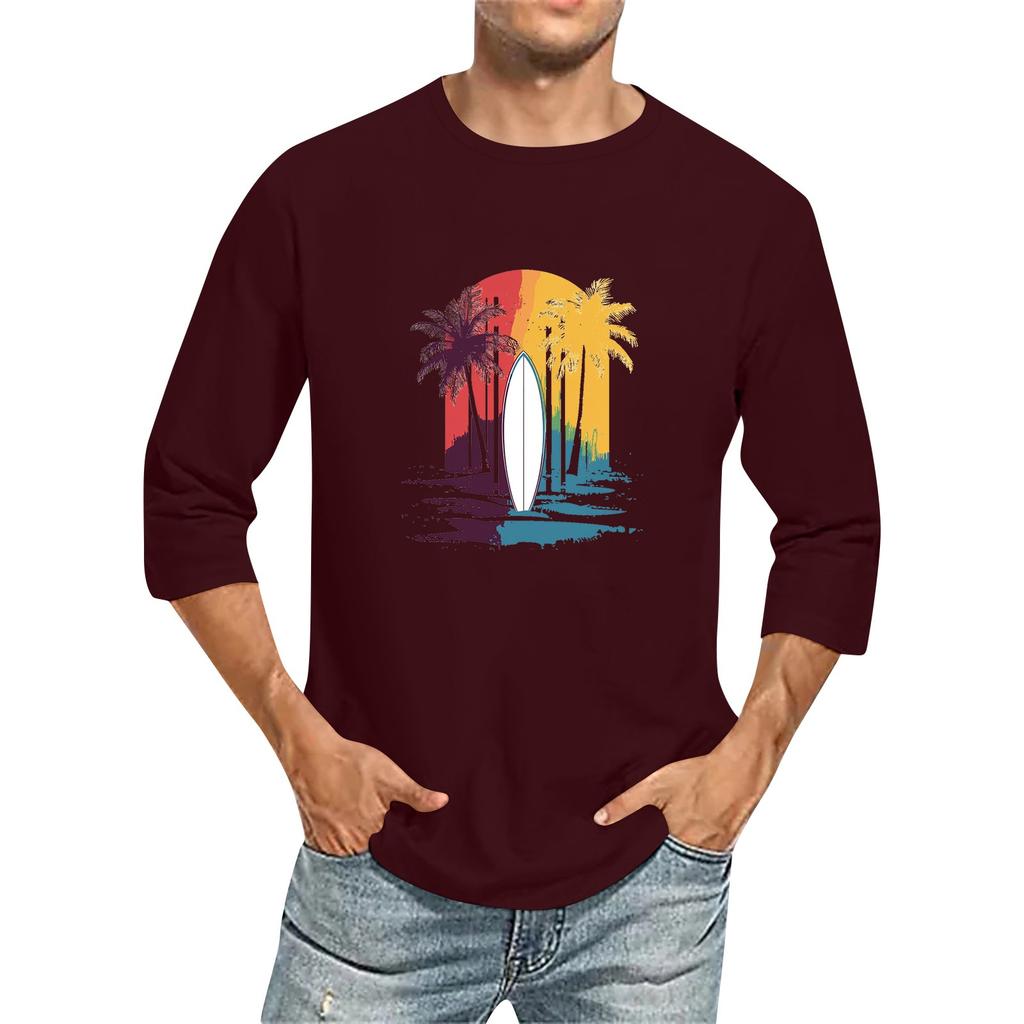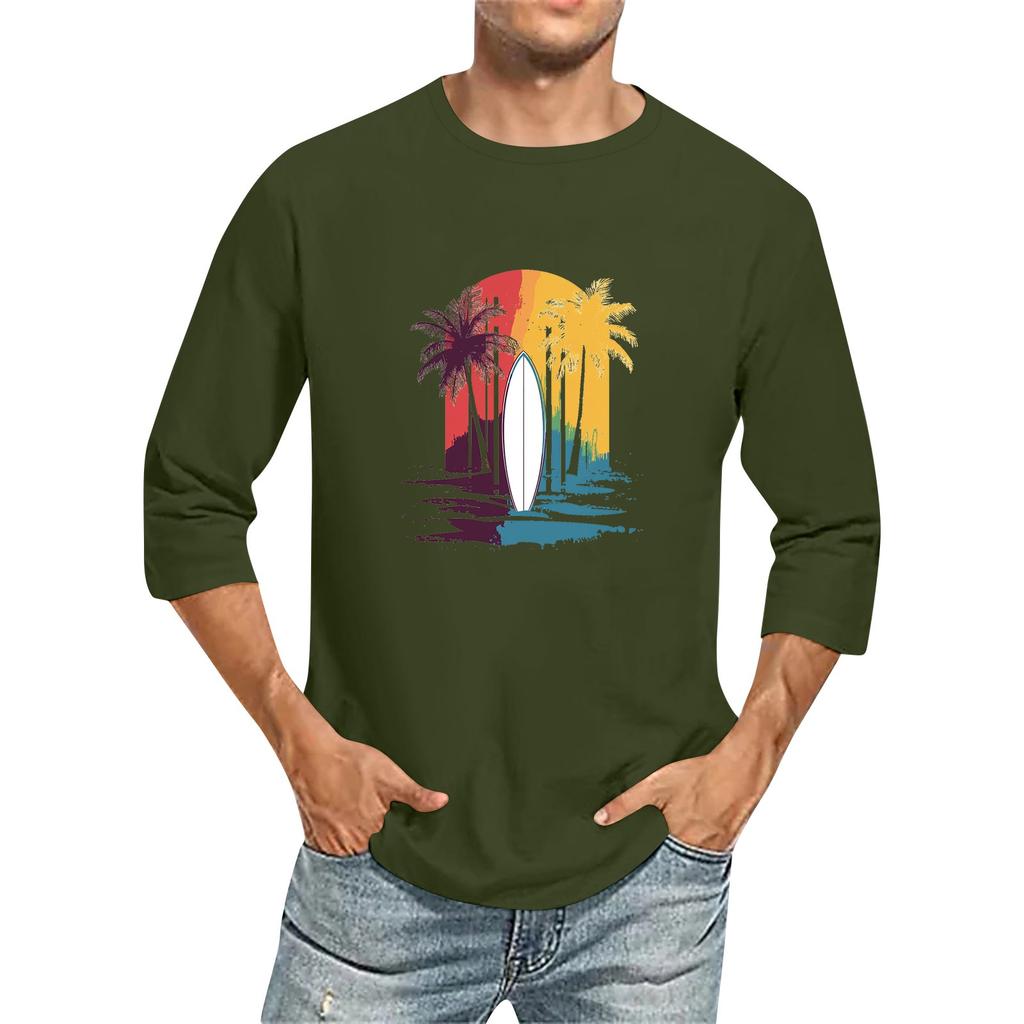 Мужская однотонная футболка с круглым вырезом и рукавами три четверти