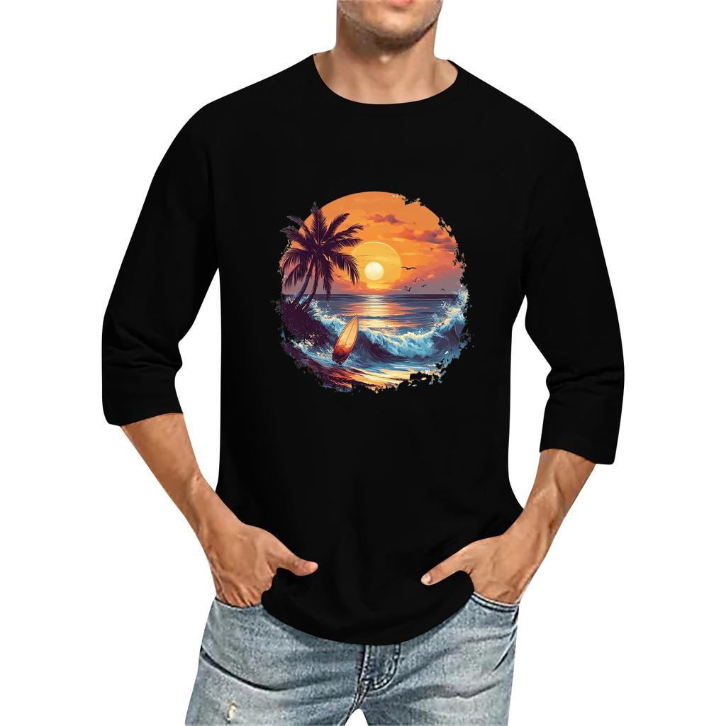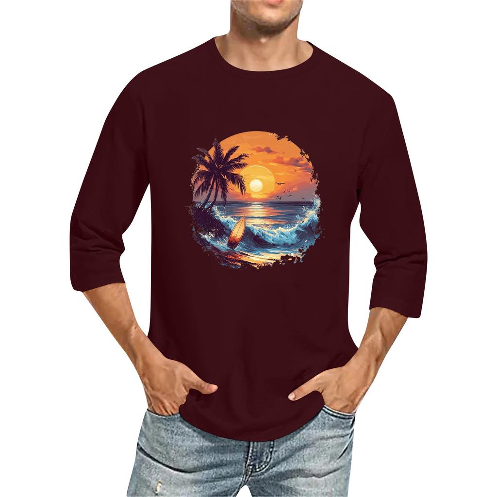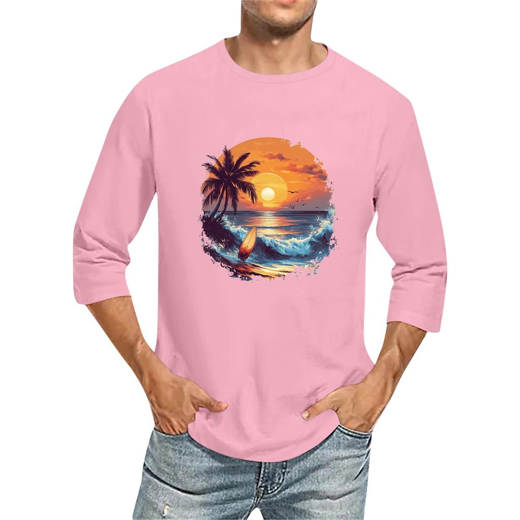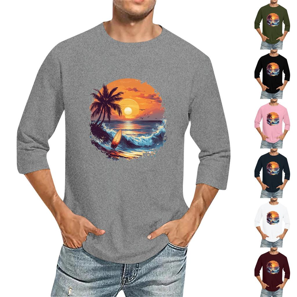 Мужская однотонная футболка с круглым вырезом и рукавами три четверти
