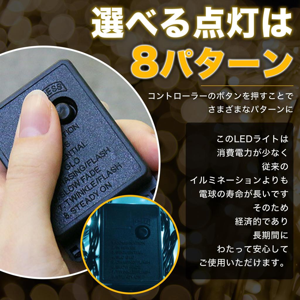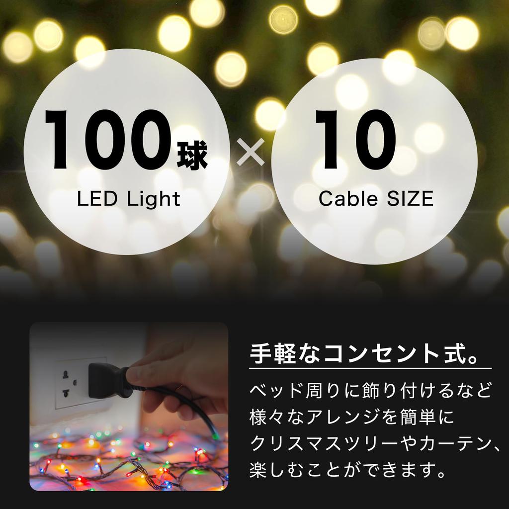 100 LED Illumination Lights, 10m, Indoor Use, Christmas Tree Decoration, AC Power Compatible, Outlet Controller Included, 8 Modes, Perfect for