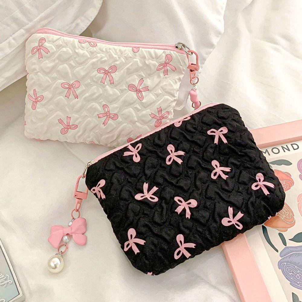 Bow Pendant Bow Cosmetic Bag Zipper Coin Purse Travel Wash Bag Balletcore Makeup Bag Girls