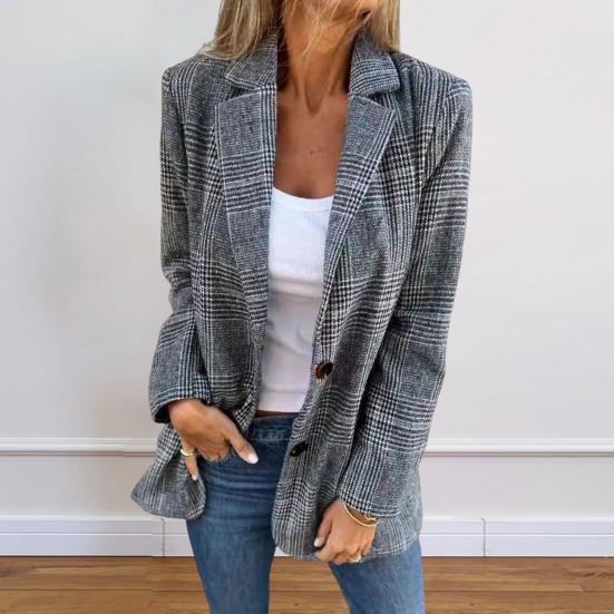 Классический клетчатый узор добавляет нотку изысканности простому, но модному облику.. Сочетайте эту универсальную куртку с различными топами и брюками, чтобы без труда создать шикарный и женственный образ для любого случая..