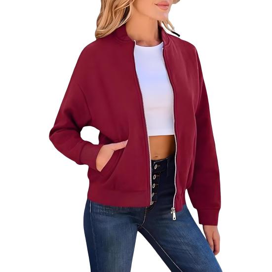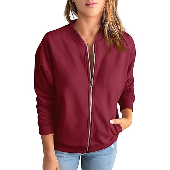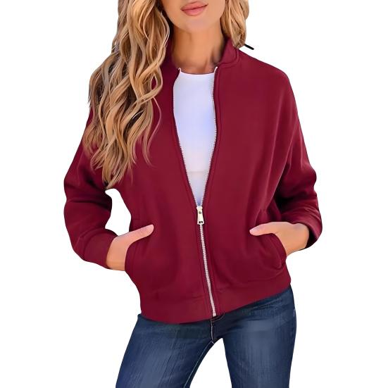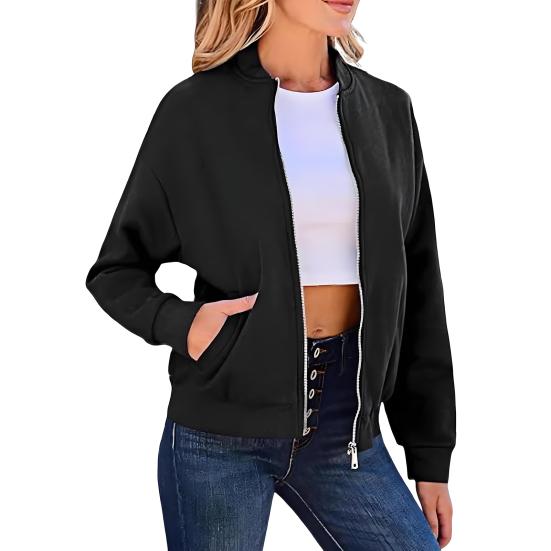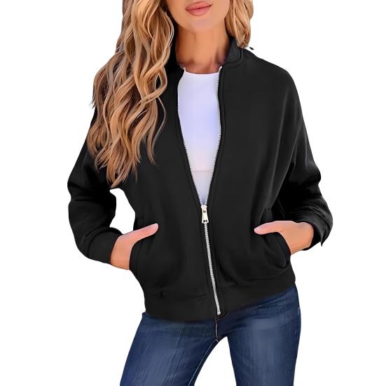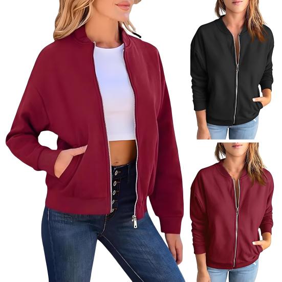 Повседневный шикарный дизайн: Примите простой, но модный стиль с этой курткой, застегивающейся на молнию спереди, с длинными рукавами, однотонной расцветкой и круглым вырезом горловины.. Его универсальный дизайн легко подходит для различных типов фигуры.