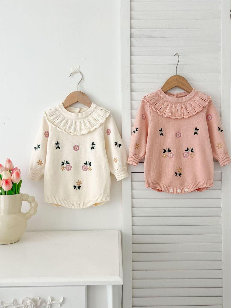 Вязаный шерстяной комбинезон для девочки с вышивкой и отложным воротником - Весенне-осенний стиль — купить товар онлайн с бесплатной доставкой по всему миру!