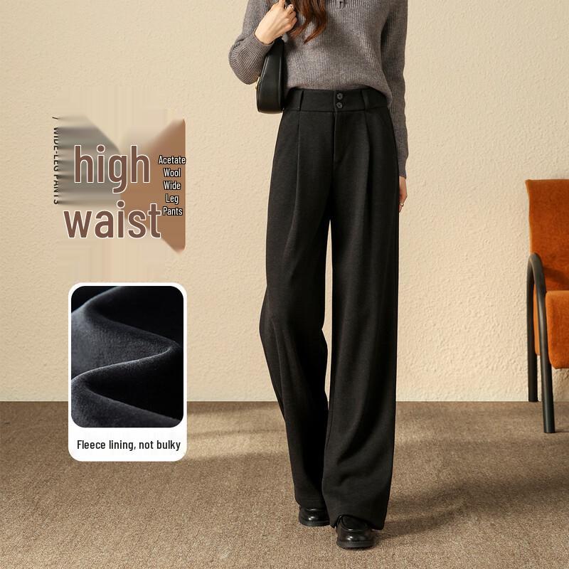 Women's Fleece-Lined Acetate Wool Blend Wide-Leg Trousers