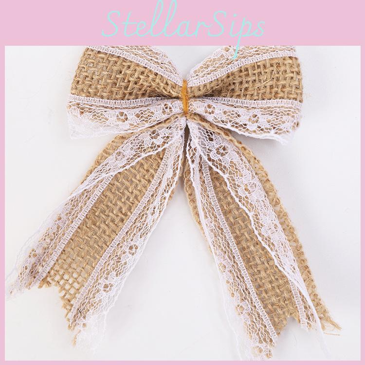 Праздничный рождественский бант из необработанного льняного материала, ручная работа, декор для праздничной елки