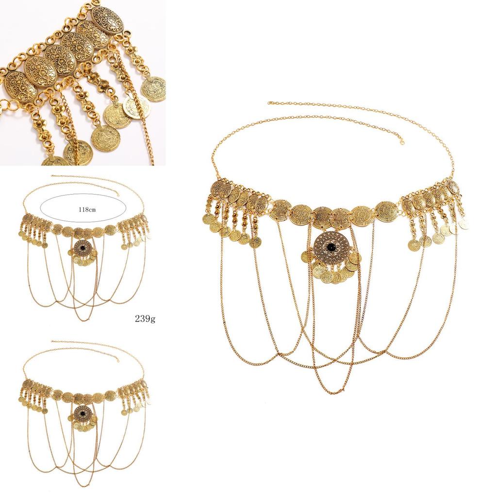 Металлический пояс в европейском стиле для женщин с отделкой под состаренное золото и кисточками для летних нарядов