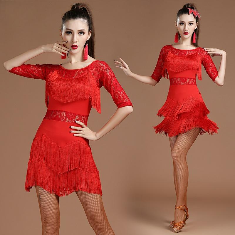 Танцевальный костюм для латиноамериканских танцев для взрослых, женский, для выступлений, кружевной с бахромой, платье для бальных танцев, костюм для соревнований