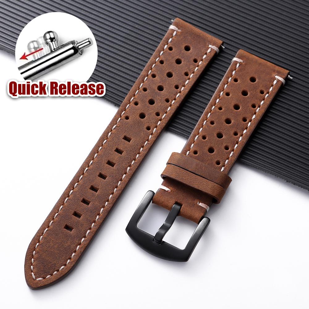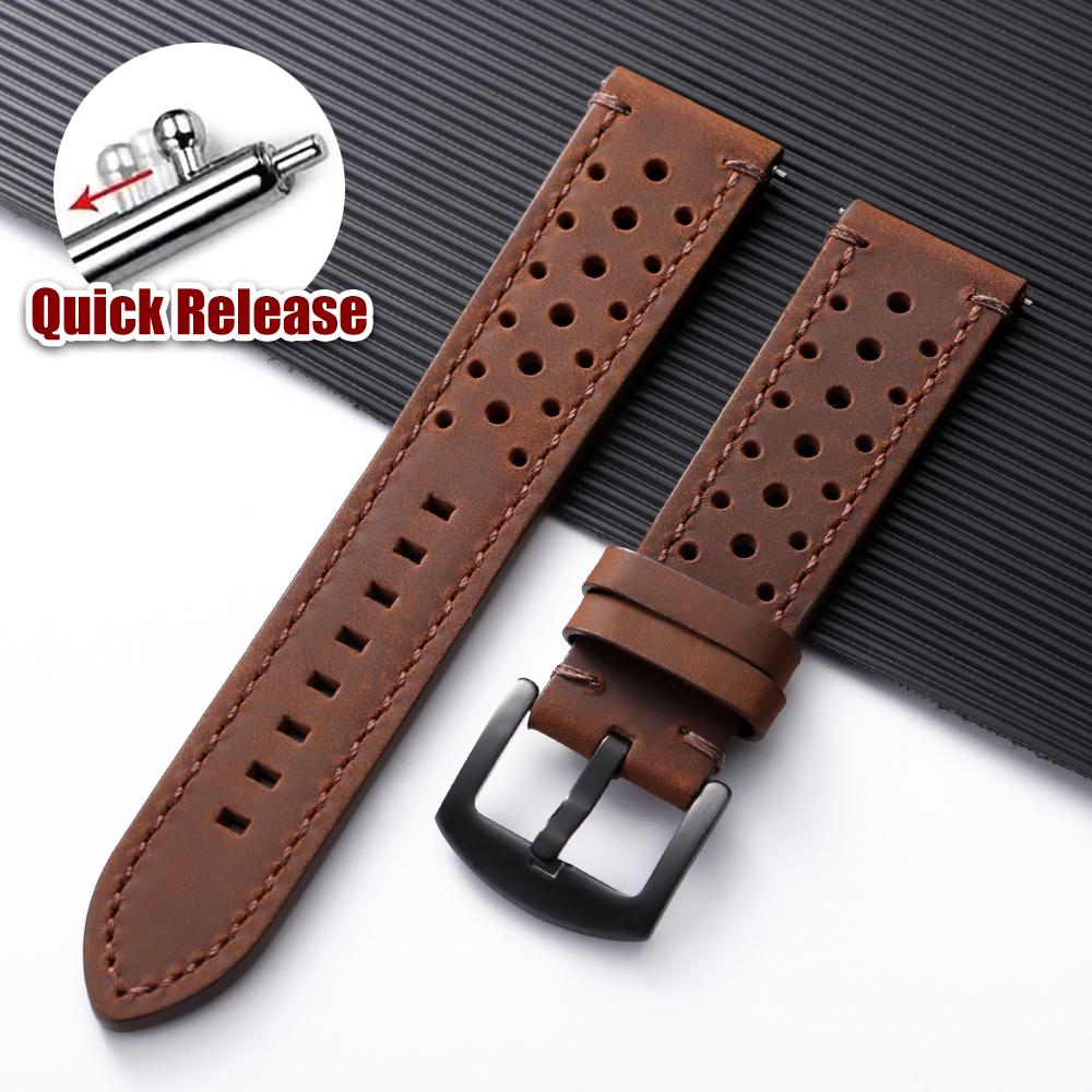 Винтажный ремешок для часов ручной работы 18 мм 19 мм 20 мм 21 мм 22 мм 24 мм Кожаный ремешок Серый Черный Коричневый Дышащий Пористый Ремешок для смарт-часов