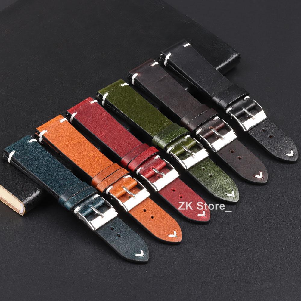 Винтажный ремешок для часов из натуральной телячьей кожи с масляной восковой пропиткой, быстросъемный, ручная прошивка, кожаный ремешок для часов 18 мм 20 мм 22 мм, аксессуары для часов