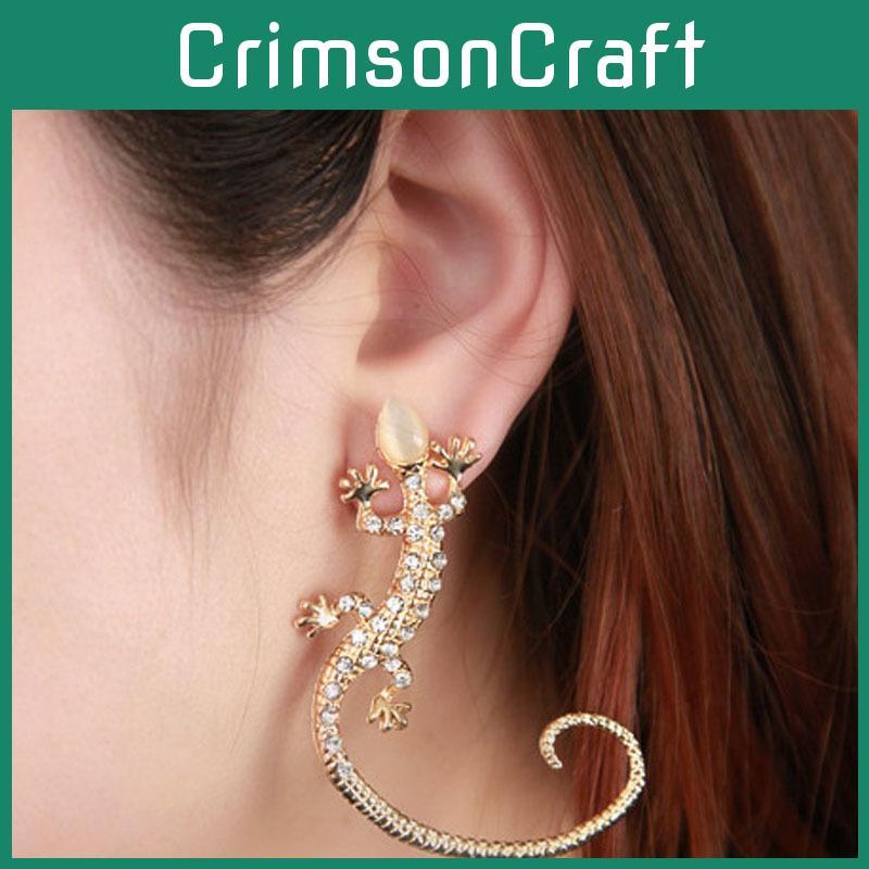 Серьги из сплава в виде геккона с блестящими акцентами для женщин