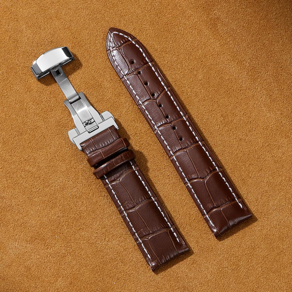 Деловой Повседневный Черный Коричневый Натуральная Телячья Кожа Ремешок для Часов Застежка-бабочка Узор Крокодила Браслет 18 20 22 24мм