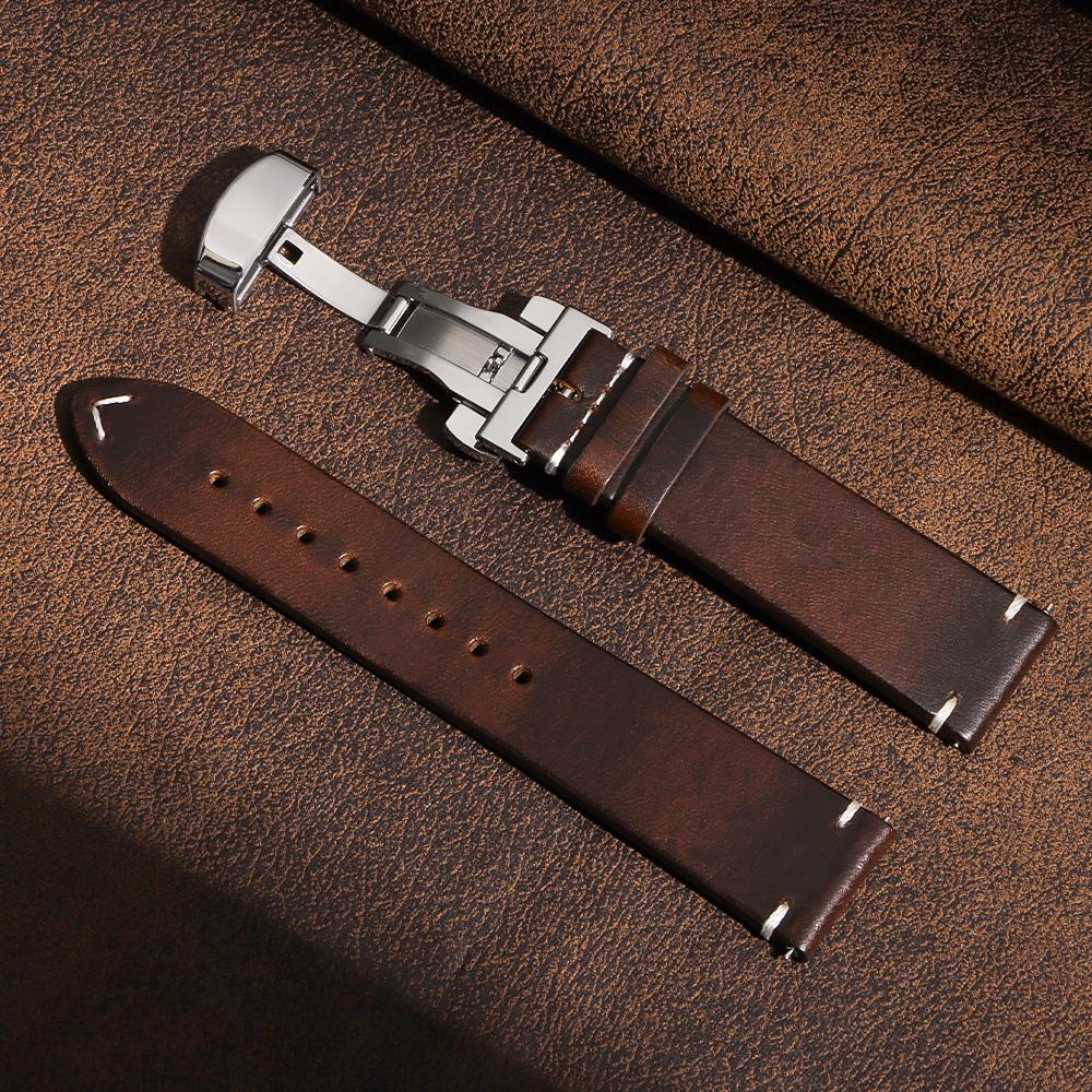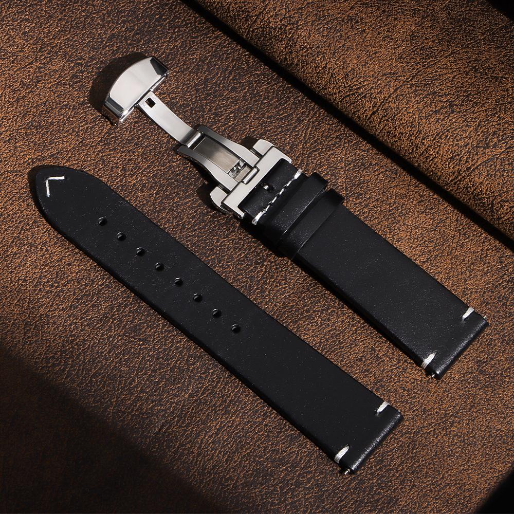 Ремешок для часов из премиальной коровьей кожи, застежка-бабочка, прострочка, ремешок из телячьей кожи для браслета Omega 18/19/20/21/22/24 мм, браслет для Seiko