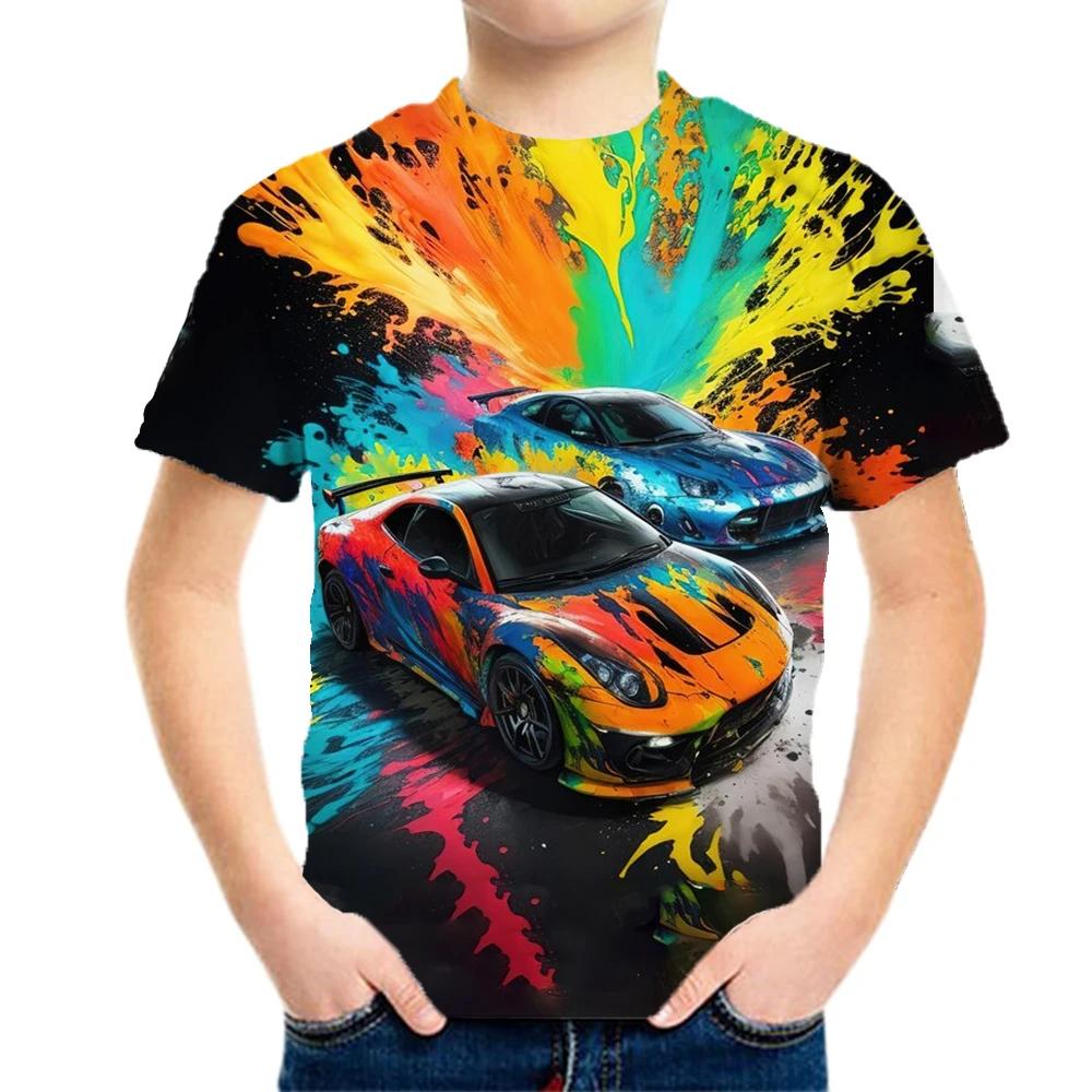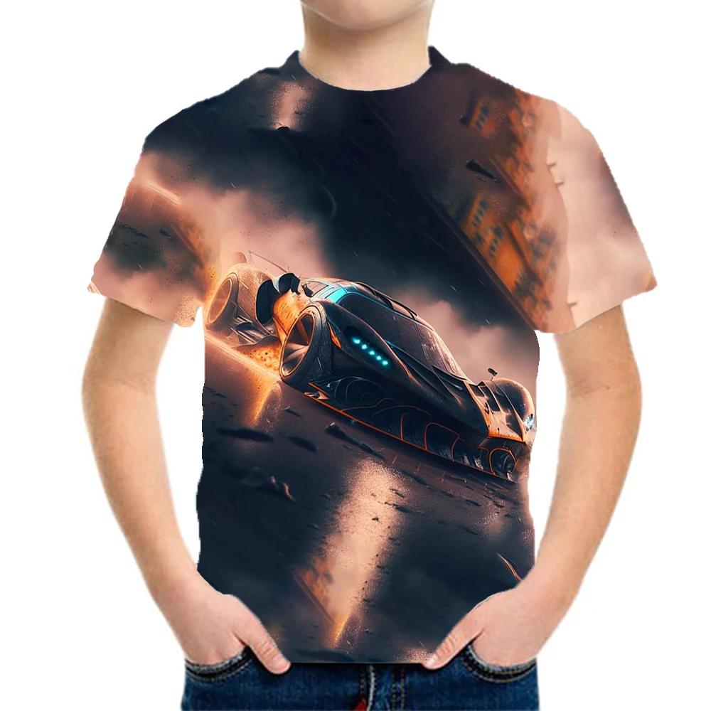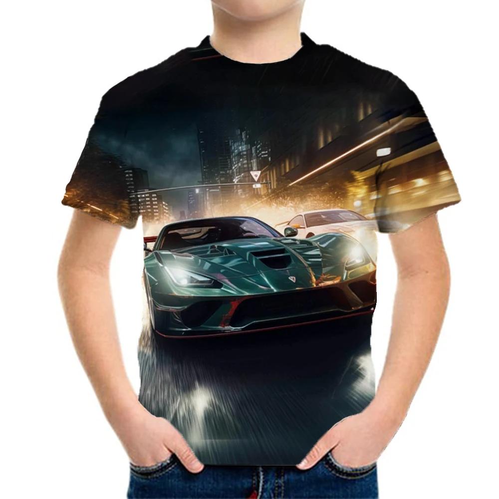 Футболки с графическим принтом гоночных машин для мальчиков и девочек, подарок для детей, топы с коротким рукавом для детей, одежда для детей из мужских футболок