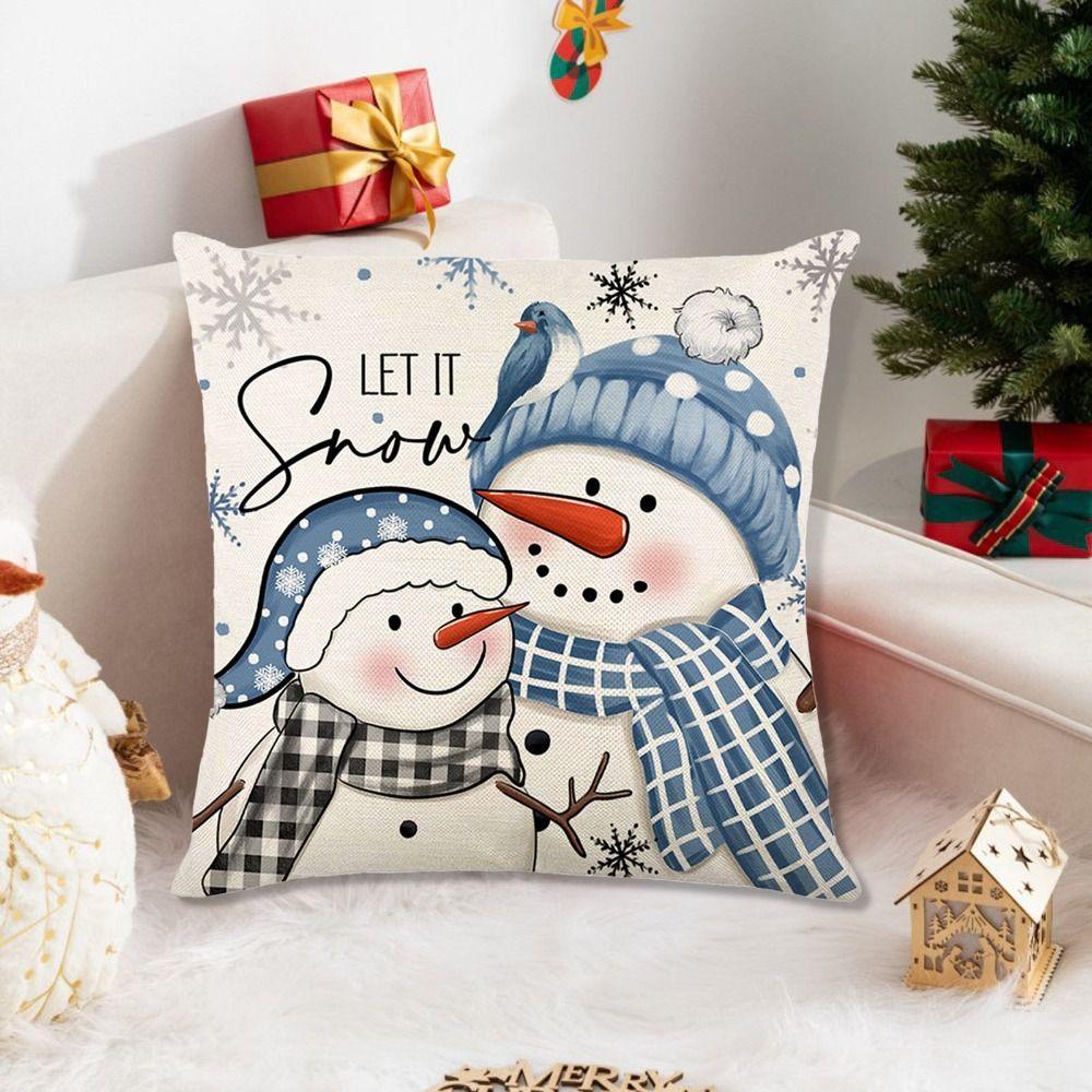 2Pcs Luxury Christmas Blue Cushion Cover Soft Snowman Pillow Shell Pillow
