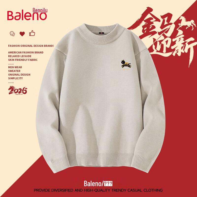Baleno Men's Half-High Collar Knit Sweater with Horse Logo