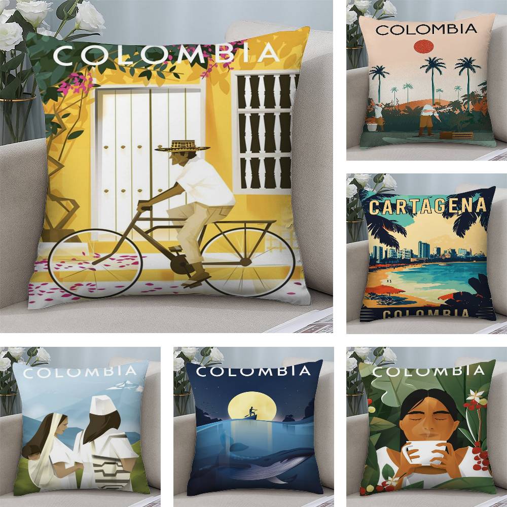 Винтажная наволочка в колумбийском стиле, короткий плюш, двусторонняя печать, квадратные наволочки для диванных подушек, домашний декор