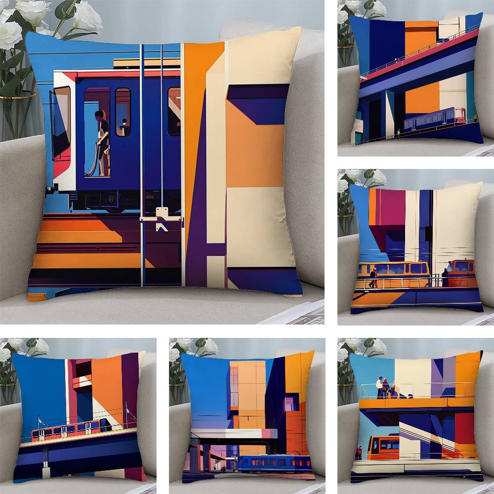 Подушка в стиле минимализм с цветным блоком, короткий плюш, двусторонняя печать, квадратные наволочки для диванных подушек, декор для дивана и дома