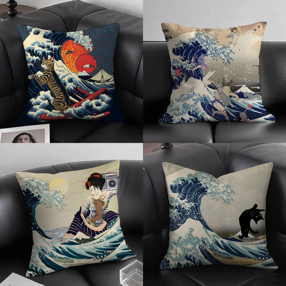 1 шт. Наволочка «Большая волна в Канагаве» Хокусай, квадратная, для спальни, дивана, для отдыха, удобная подушка, для автомобиля, гостиной, домашнего декора
